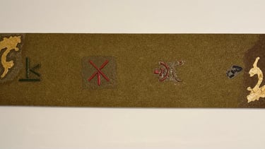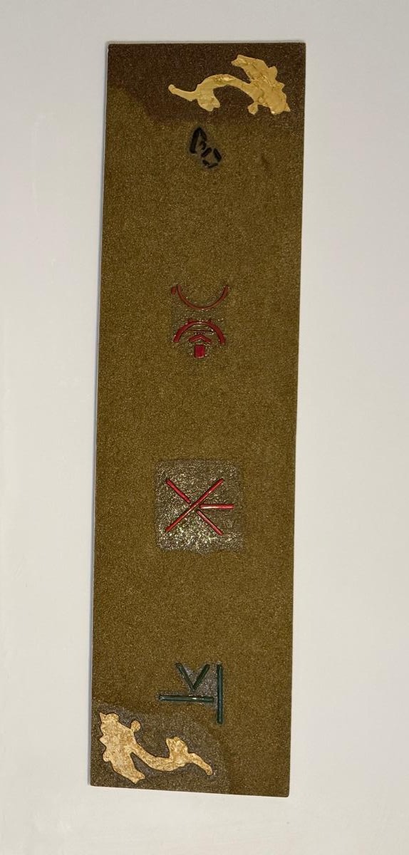Materials Gold leaf, lacquered wood, metallic paint, resin
